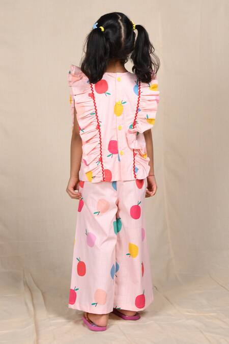 Buy_APRICOTKIDS_Peach Cotton Printed Apples Top And Pant Set_at_Aza_Fashions