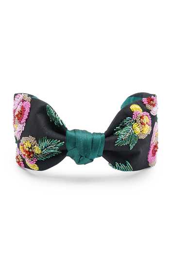 Black Embroidery, Sequins, Beads Cascading Blossom Knotted Headband