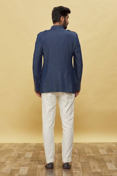 Buy_Aqube By Amber_Blue Denim Bandhgala_Online_at_Aza_Fashions