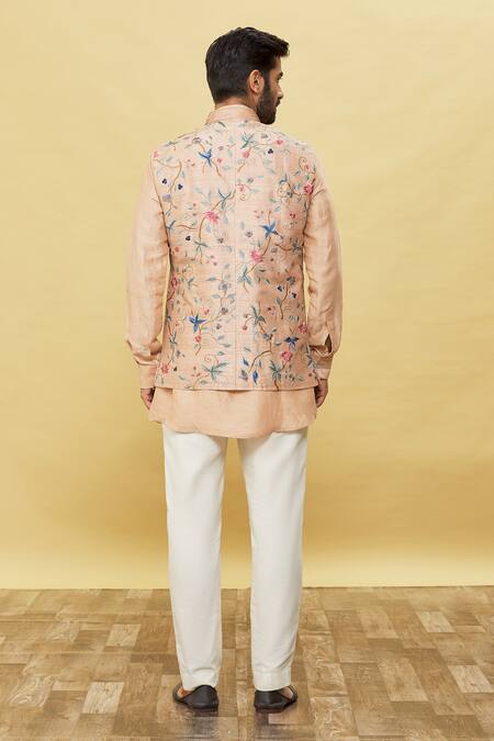 Peach Silk Embroidery Floral Bundi