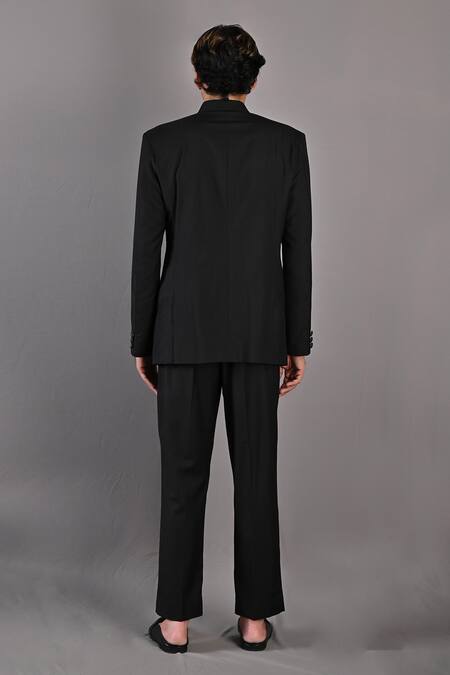 Buy_Bohame_Black Terry Wool Abstract Floral Pattern Aragorn Embroidered Bandhgala Set_Online_at_Aza_Fashions