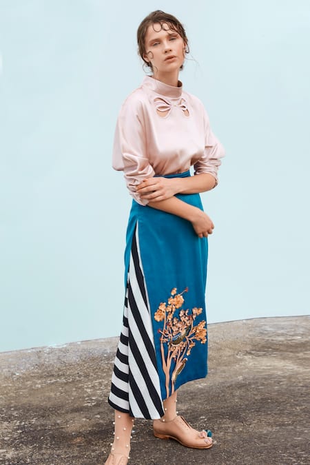 Embroidered, Cutout detail, High collar, Note:, Skirt worn by the model is not for sale