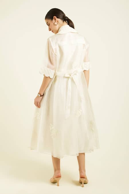 Ivory Organza, Brocade Embroidery Open Neck, Jacket Dress
