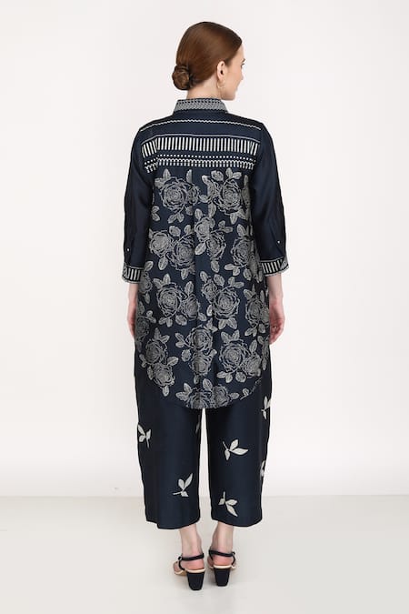 Buy_Arcvsh By Pallavi Singh_Blue Lining Cotton, Silk Chanderi Petal Printed Palazzo _at_Aza_Fashions