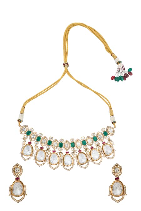 Green Zari Kundan And Ruby Necklace Set