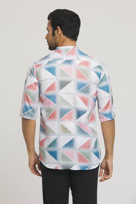 Multi Color Cotton Abstract Geometric Tile Print Shirt