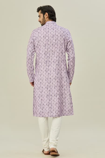 Buy_Arihant Rai Sinha_Purple Cotton Abstract Print Kurta _Online_at_Aza_Fashions