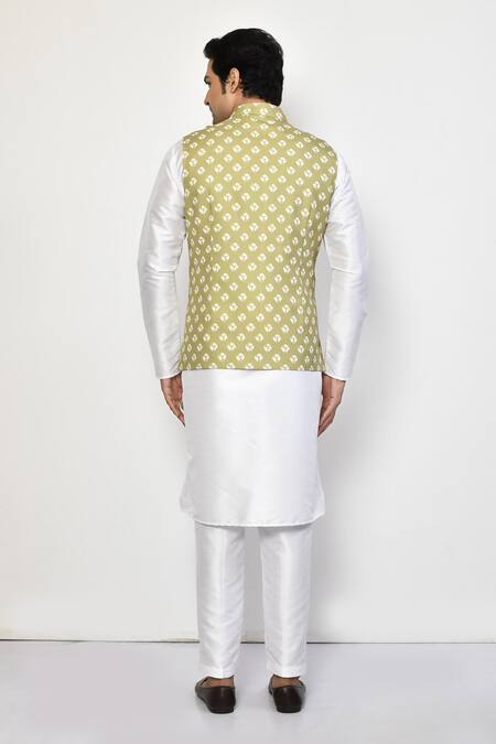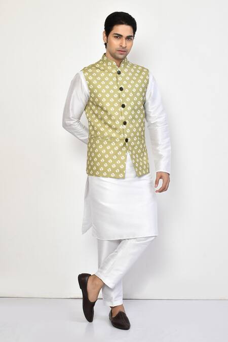 Green Linen, Cotton Bandhani Patterned Nehru Jacket
