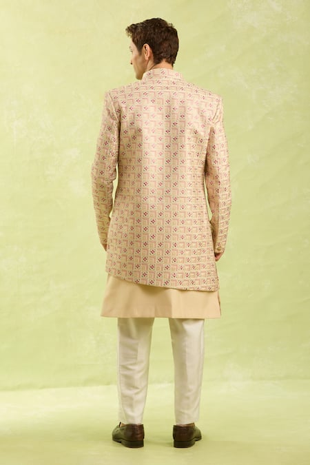 Buy_Arihant Rai Sinha_Beige Embroidery Patterned Sherwani And Pant Set