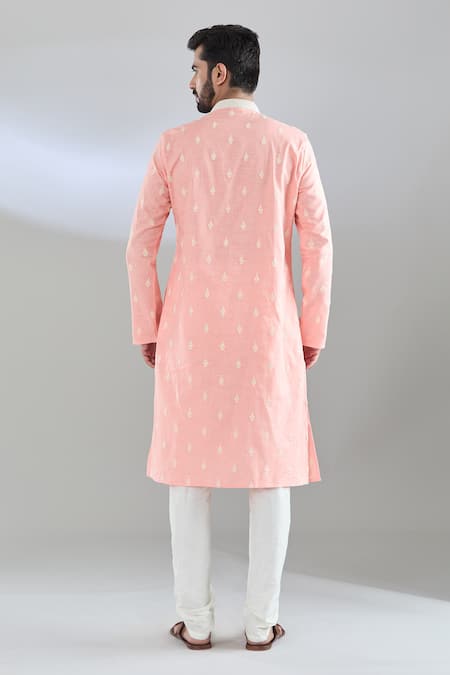 Buy_Arihant Rai Sinha_Peach Polyester, Cotton Embroidery Bloom Crest Kurta And Churidar Set _Online_at_Aza_Fashions