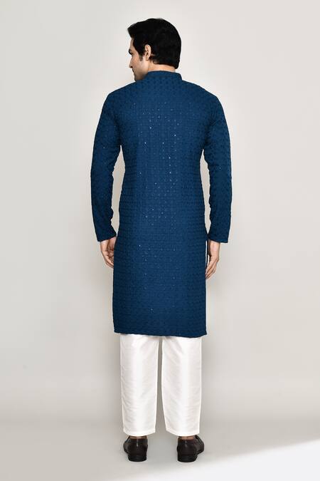 Buy_Arihant Rai Sinha_Blue Rayon, Cotton, Silk Embroidery, Bloom Jaal Chikankari Kurta With Pant_Online_at_Aza_Fashions