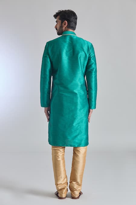 Buy_Arihant Rai Sinha_Green Silk Embroidery Bloom Placket Textured Kurta _Online_at_Aza_Fashions