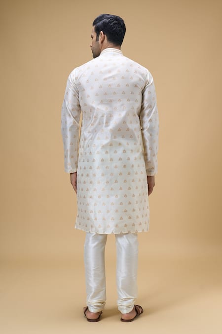Buy_Arihant Rai Sinha_Cream Jacquard, Silk Embroidery Bloom Swerve Motif Woven Kurta _Online_at_Aza_Fashions