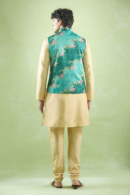 Green Jacquard Embroidery Bloom Vine Print Bundi