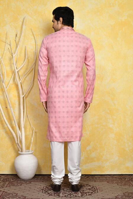 Buy_Arihant Rai Sinha_Pink Cotton Embroidery Checkered Print Kurta And Churidar Set _at_Aza_Fashions