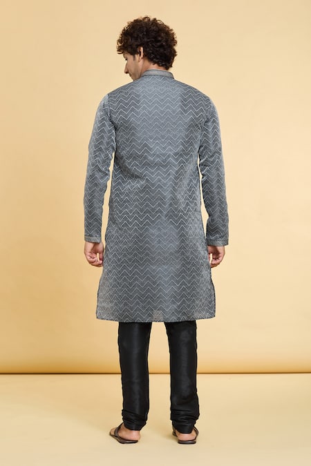 Buy_Arihant Rai Sinha_Black Jacquard, Silk Embroidery Chevron Fleur Woven Kurta With Churidar _at_Aza_Fashions