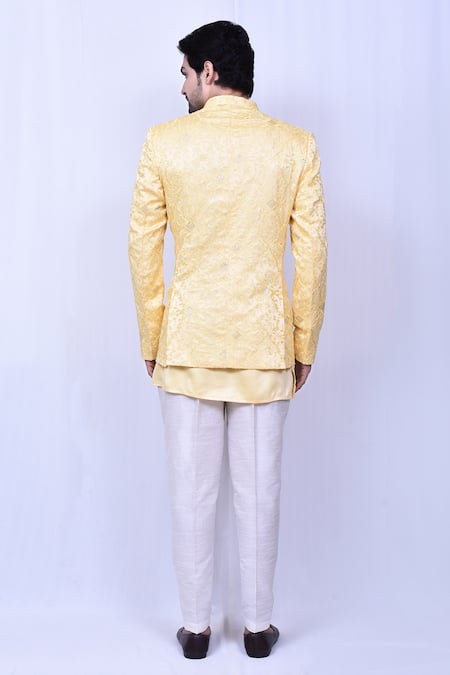 Buy_Arihant Rai Sinha_Yellow Satin, Silk, Cotton Embroidery Chikankari Coat And Short Kurta Set _Online_at_Aza_Fashions