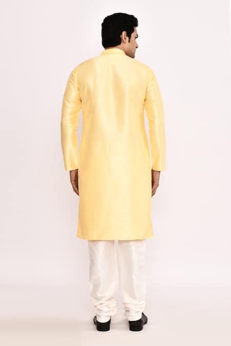Yellow long kurta made from a silk blend featuring a mandarin collar and full sleeves
