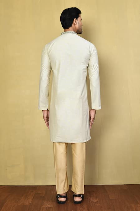 Buy_Arihant Rai Sinha_Cream Cotton Embroidery Collar Kurta And Pyjama Set _at_Aza_Fashions