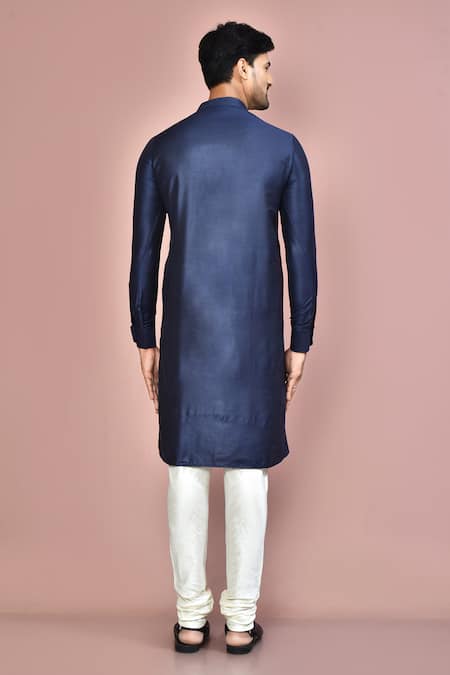 Buy_Arihant Rai Sinha_Blue Cotton, Silk Plain Kurta Set _at_Aza_Fashions