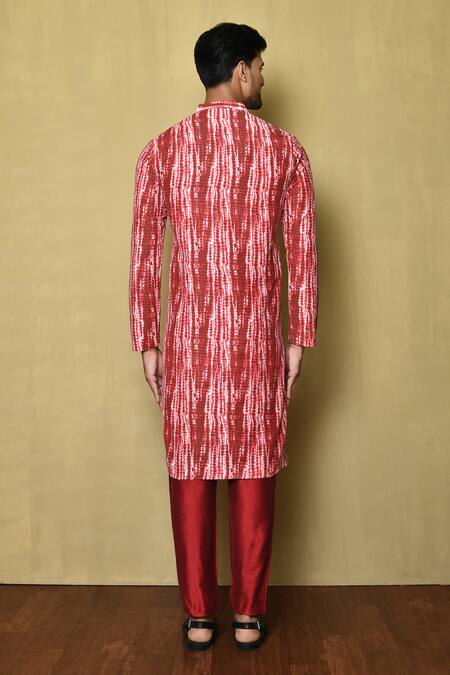 Buy_Arihant Rai Sinha_Red Kurta Cotton Silk Printed Straight And Pant Set_Online_at_Aza_Fashions