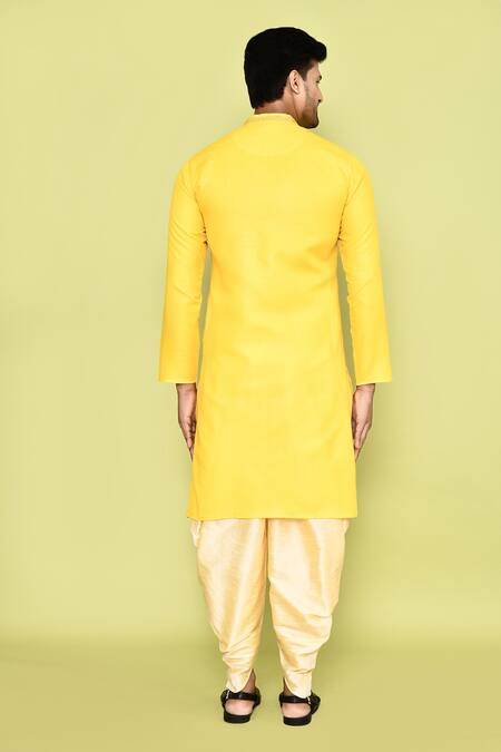 Buy_Arihant Rai Sinha_Yellow Cotton, Silk Stones, Embroidery Kurta With Patiyala _at_Aza_Fashions