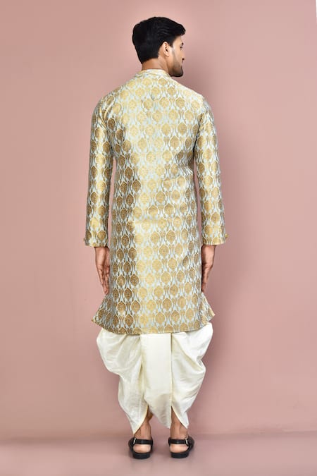 Buy_Arihant Rai Sinha_Grey Cotton Woven Floral Kurta And Dhoti Pant Set_Online_at_Aza_Fashions