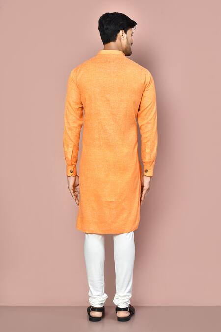 Buy_Arihant Rai Sinha_Orange Cotton Plain Cross Cut Kurta Set _Online_at_Aza_Fashions