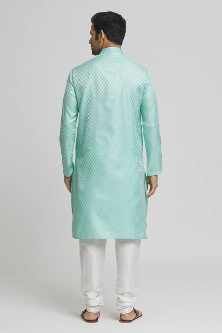 Buy_Arihant Rai Sinha_Green Silk Damask Motif Blend Kurta Set_at_Aza_Fashions