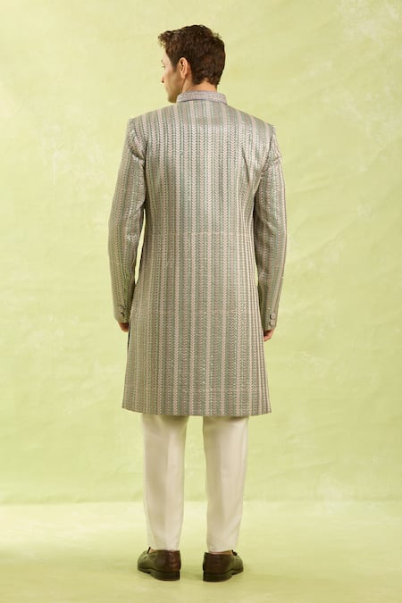 Gray Silk Dark 2-piece Sherwani Set