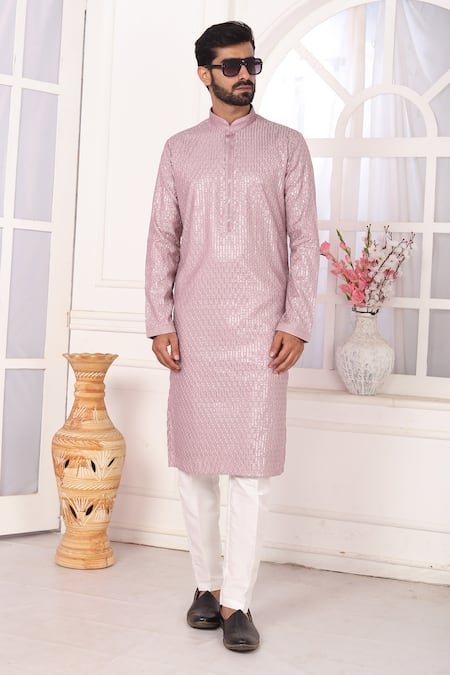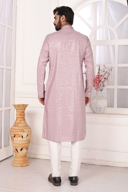Purple straight kurta made from embroidered art silk featuring intricate thread work