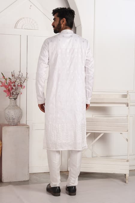 Buy_Arihant Rai Sinha_Off White Silk Embroidery Art Straight Kurta _at_Aza_Fashions