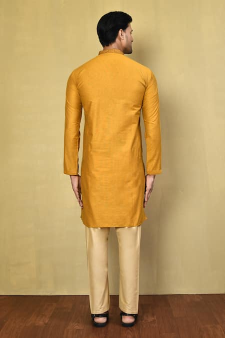 Buy_Arihant Rai Sinha_Gold Cotton Embroidery Collar Kurta And Pyjama Set _Online_at_Aza_Fashions