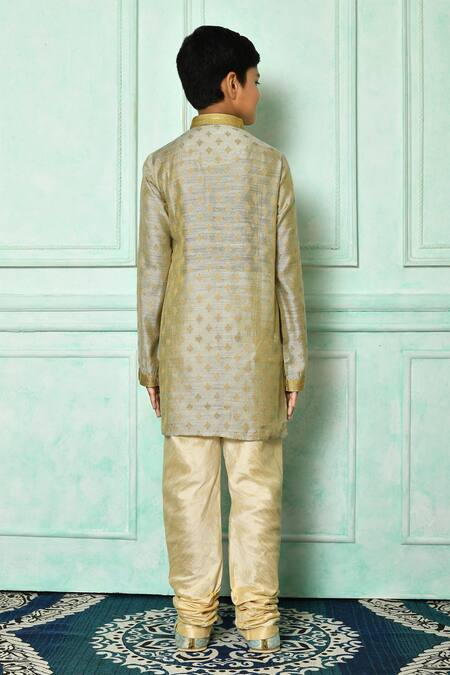 Buy_Petite Pomme_Grey Denim, Silk Embroidery Kurta And Churidar Set _at_Aza_Fashions