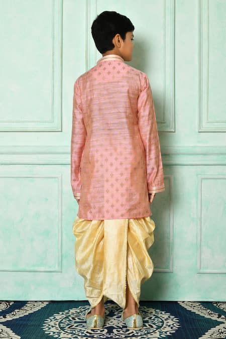 Buy_Petite Pomme_Pink Silk Embroidery Kurta And Dhoti Pant Set _Online_at_Aza_Fashions