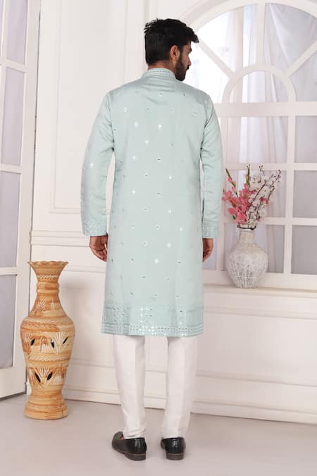 Buy_Arihant Rai Sinha_Green Silk Embroidered Pista Kurta Set _at_Aza_Fashions