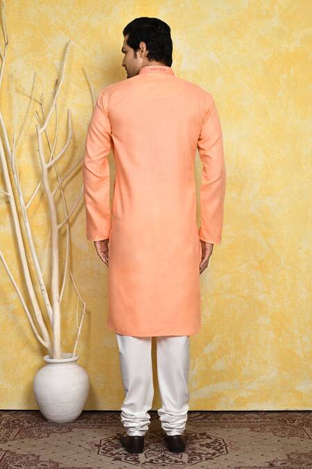 Buy_Arihant Rai Sinha_Orange , Satin Embroidery Placket Kurta And Churidar Set_at_Aza_Fashions