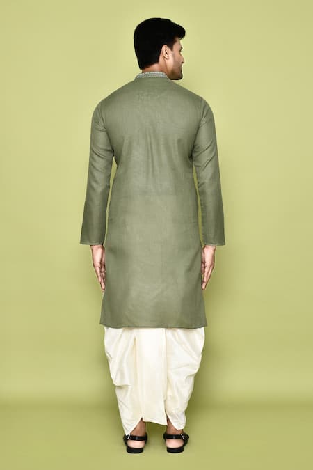 Buy_Arihant Rai Sinha_Green Cotton, Silk Embroidery Placket Straight Kurta With Dhoti Pant