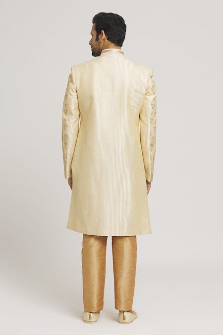 Gold Silk Beads Embroidered Sherwani And Pant Set