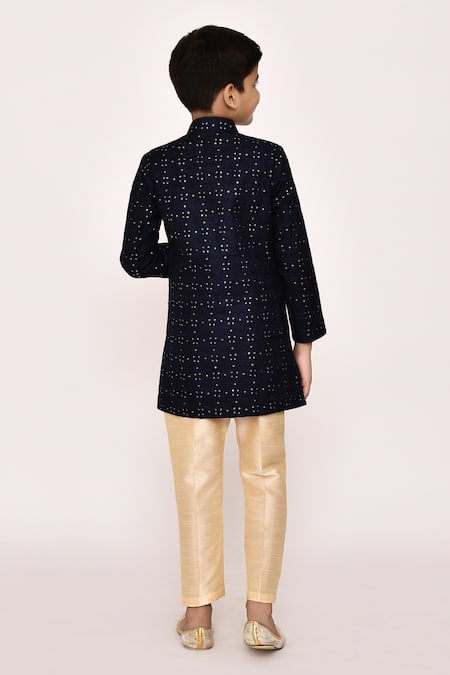Petite Pomme_Blue Silk Sequins, Embroidery Sherwani And Pyjama Set _Online_at_Aza_Fashions
