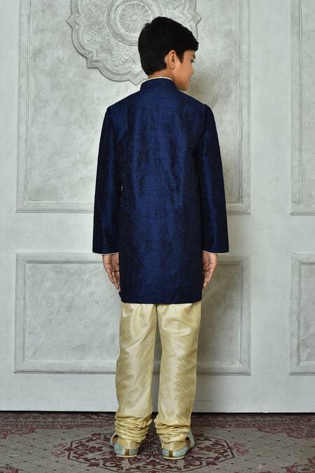 Blue Silk Embroidery Flora And Leaf Kurta