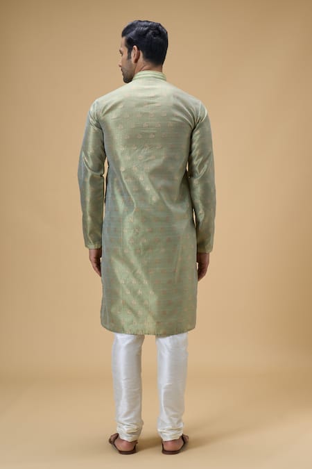 Buy_Arihant Rai Sinha_Green Jacquard, Silk Embroidery Flora Swerve Motif Woven Kurta _at_Aza_Fashions