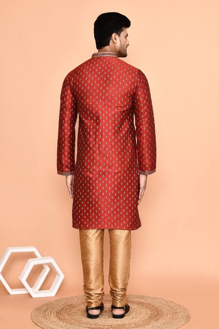Buy_Arihant Rai Sinha_Maroon Silk Embroidery Floral Butti Print Kurta With Churidar_at_Aza_Fashions