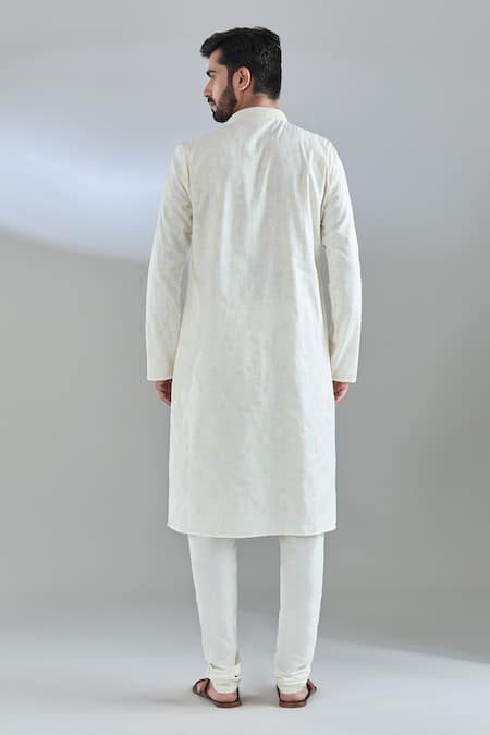 Buy_Arihant Rai Sinha_Cream Polyester, Cotton Embroidery Floral Crest Kurta Set _Online_at_Aza_Fashions