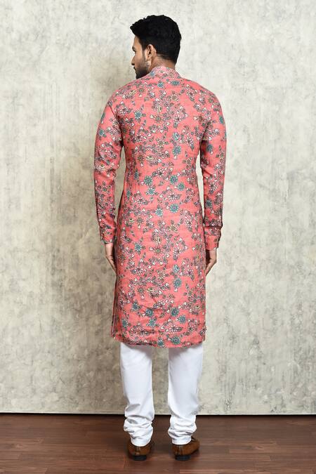Buy_Arihant Rai Sinha_Red Linen Floral Digital Print Long Kurta_Online_at_Aza_Fashions