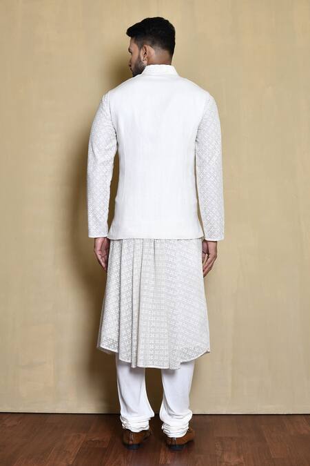 Buy_Arihant Rai Sinha_White Cotton Embroidery Floral Bundi Kurta Set_at_Aza_Fashions