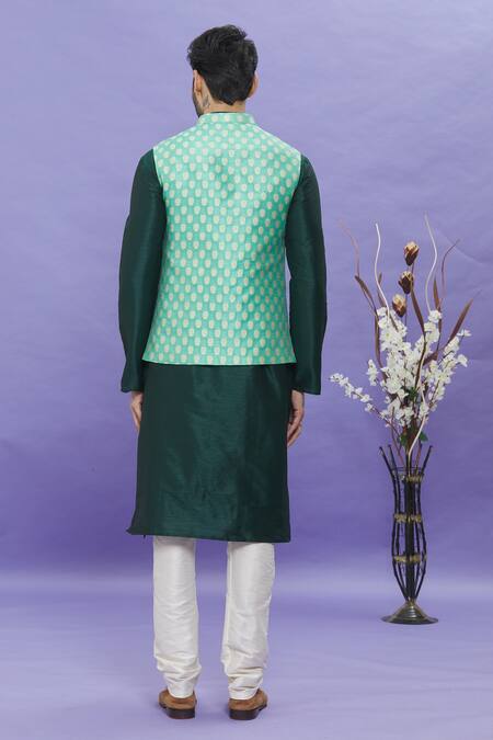Pista green bundi featuring a mandarin collar and an all-over floral pattern