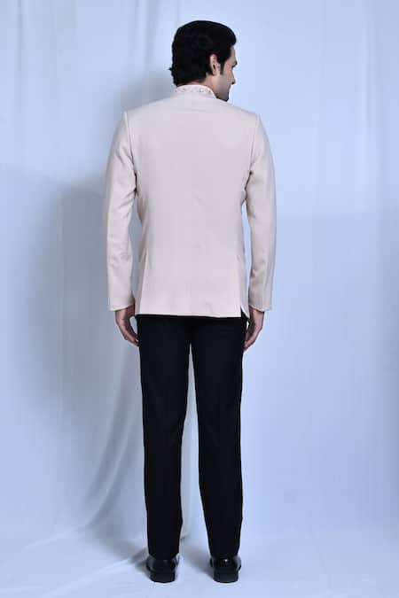 Buy_Arihant Rai Sinha_Beige Lycra, Terrycloth Zari Floral Neckline Embroidered Prince Coat Set _Online_at_Aza_Fashions