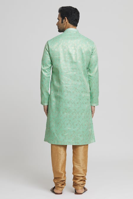 Buy_Arihant Rai Sinha_Green Silk Embroidery Floral Pattern Kurta And Churidar Set _Online_at_Aza_Fashions