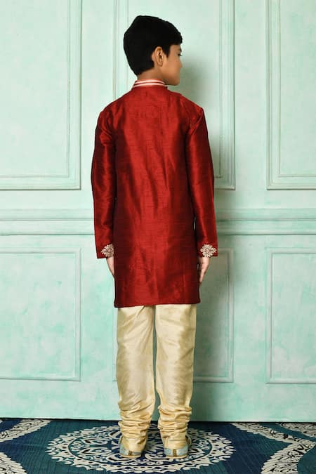 Buy_Petite Pomme_Red Silk Embroidery Floral Pattern Kurta _at_Aza_Fashions
